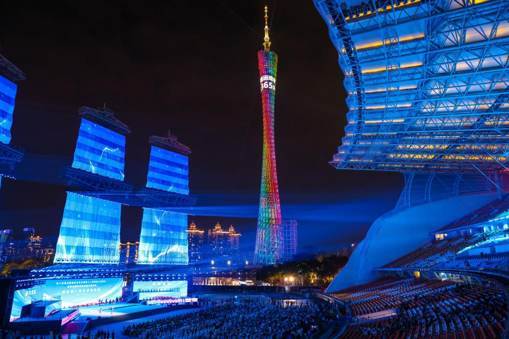 11月9日,十五運會的主題口號“激情全運會,活力大灣區(qū)”和殘?zhí)貖W會的主題口號“追夢大灣區(qū),出彩人生路”在儀式上發(fā)布。新華社記者 劉大偉 攝
