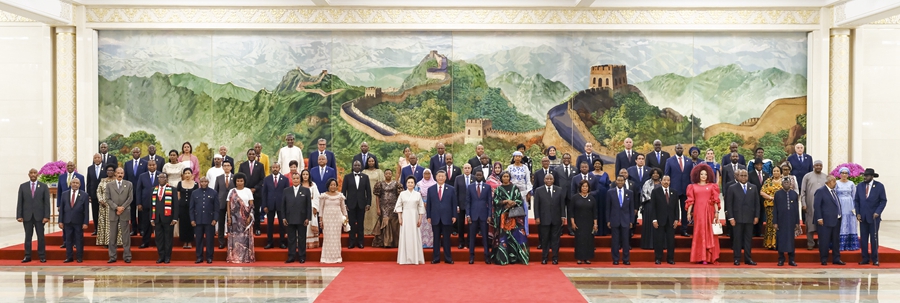 9月4日晚,國家主席習(xí)近平和夫人彭麗媛在北京人民大會(huì)堂舉行宴會(huì),歡迎來華出席中非合作論壇北京峰會(huì)的非方及國際貴賓。這是宴會(huì)前,習(xí)近平和彭麗媛同貴賓們集體合影留念。
